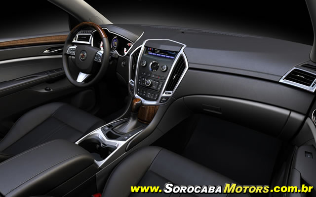 Um console central integrado aloja os controles dos sistemas de áudio e climatizador, enquanto o sistema de navegação surge a partir do centro do painel de instrumentos. Um exemplo da atenção aos detalhes no SRX é o logotipo com a assinatura Cadillac nas soleiras das portas dianteiras, que acendem quando as portas são abertas.